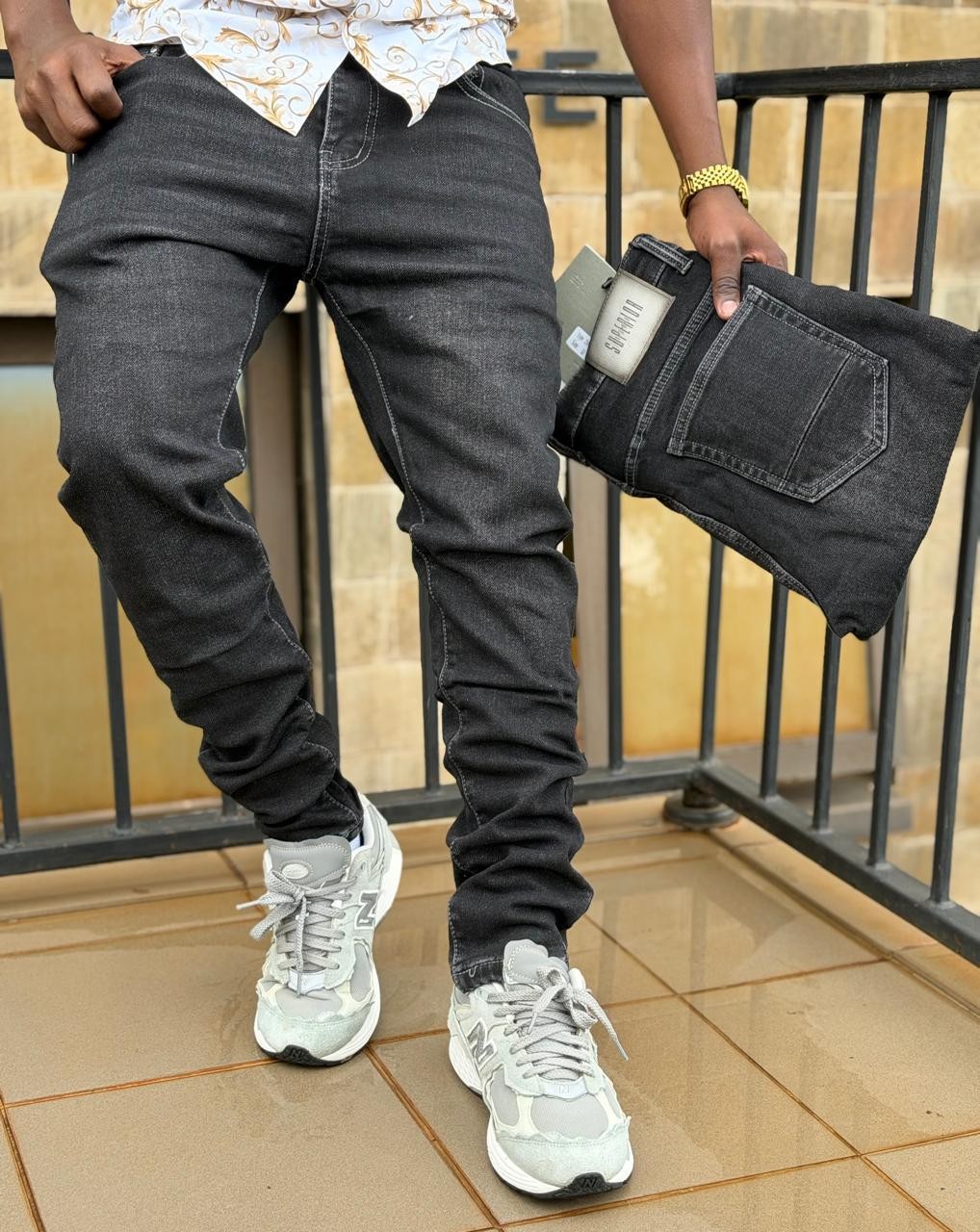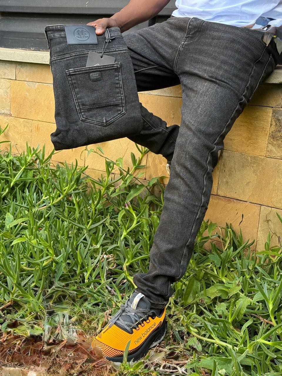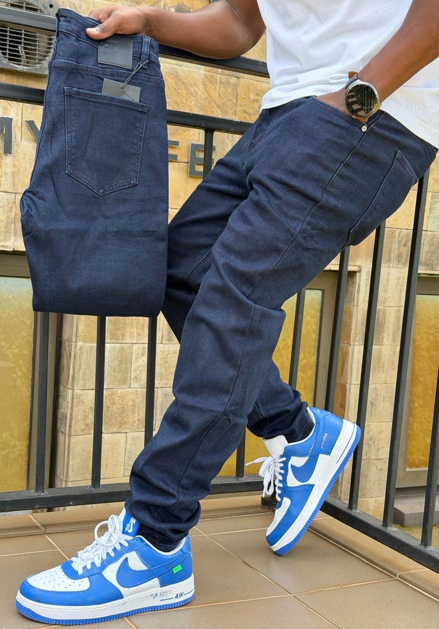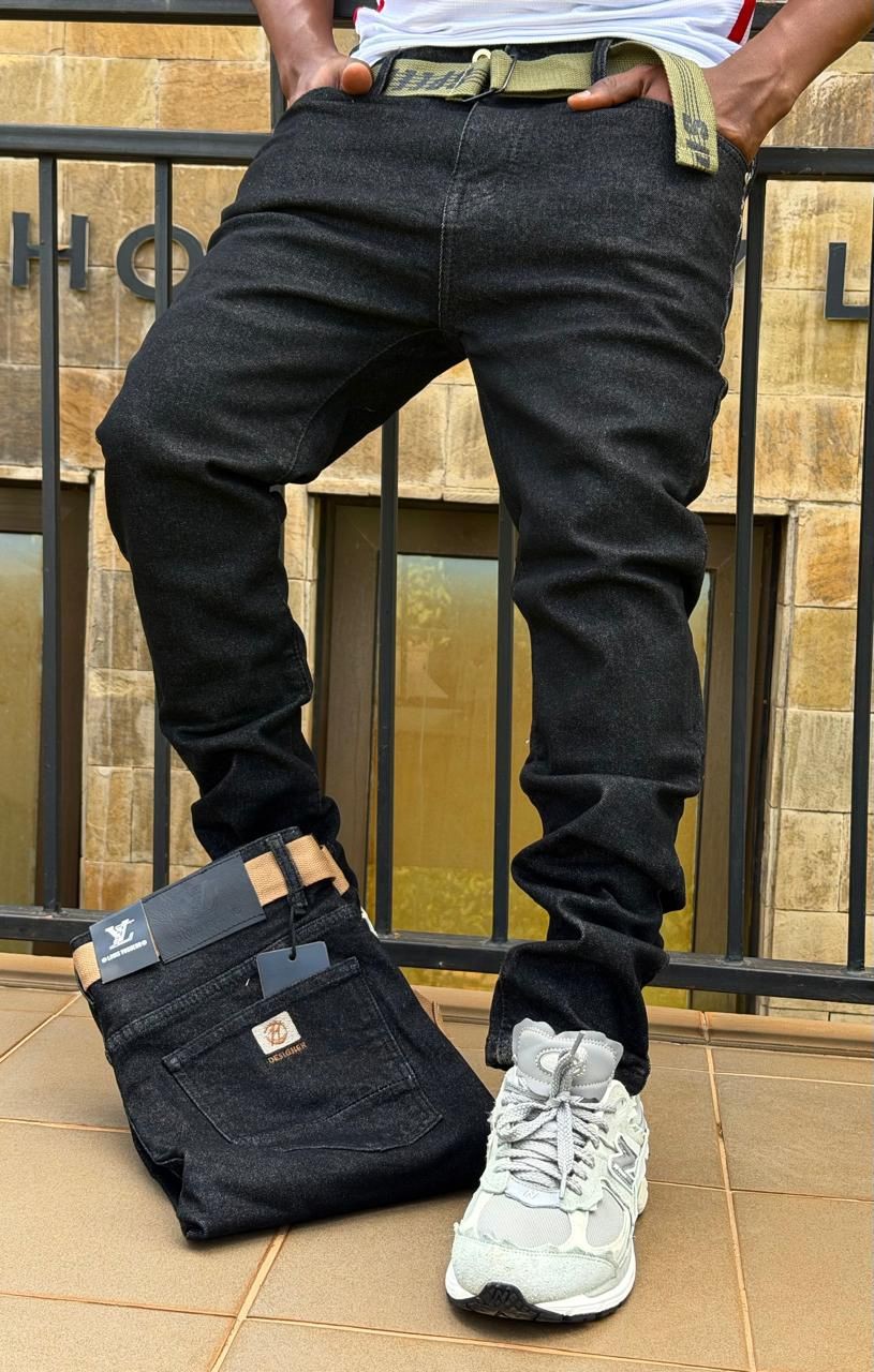 Description: Elevate any wardrobe with these stylish, deep black denim jeans. Featuring a modern flat finish and a comfortable fit, these jeans are perfect for casual wear or dressing up. A branded patch is visible on the back pocket, adding a touch of exclusivity.