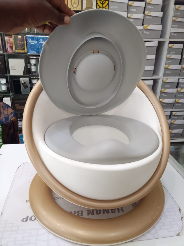 This is a baby training toilet seat with a backstreet. Helps toddlers transition from diapers to using regular bathroom. Has a backrest to make it easy and comfortable for babies. Non-slippery.